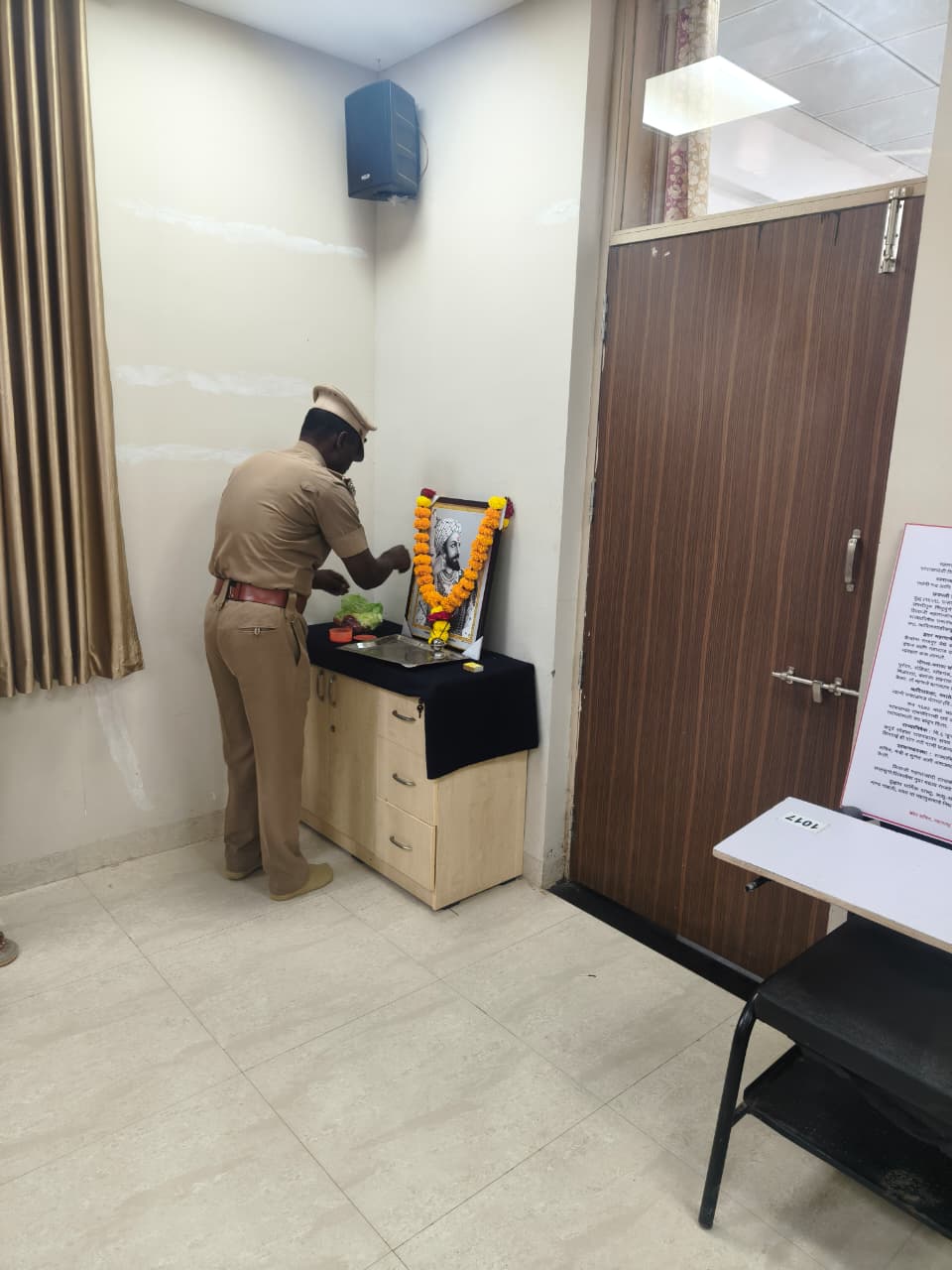 प्राचार्य कार्यालय येथे राष्ट्रगीत गाताना पोलीस अधिकारी,अंमलदार व मंत्रालयान कर्मचारी