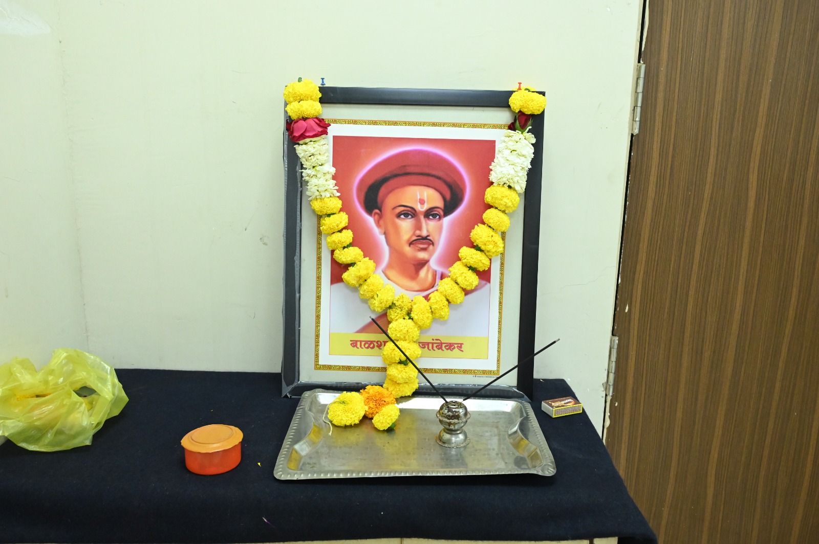 आज दिनांक:-०८/१२/२०२३ रोजी पोलीस प्रशिक्षण केंद्र ,जालना येथे संत जगनाडे महाराज यांची जयंती साजरी करण्यात आली . यावेळी मा श्री .अशोक बनकर प्राचार्य यांनी पुष्पहार अर्पण केले .उपस्थित पोलीस अधिकारी ,अंमलदार मंत्रालयीन कर्मचारी आणि नव प्रविष्ठ हजर होते