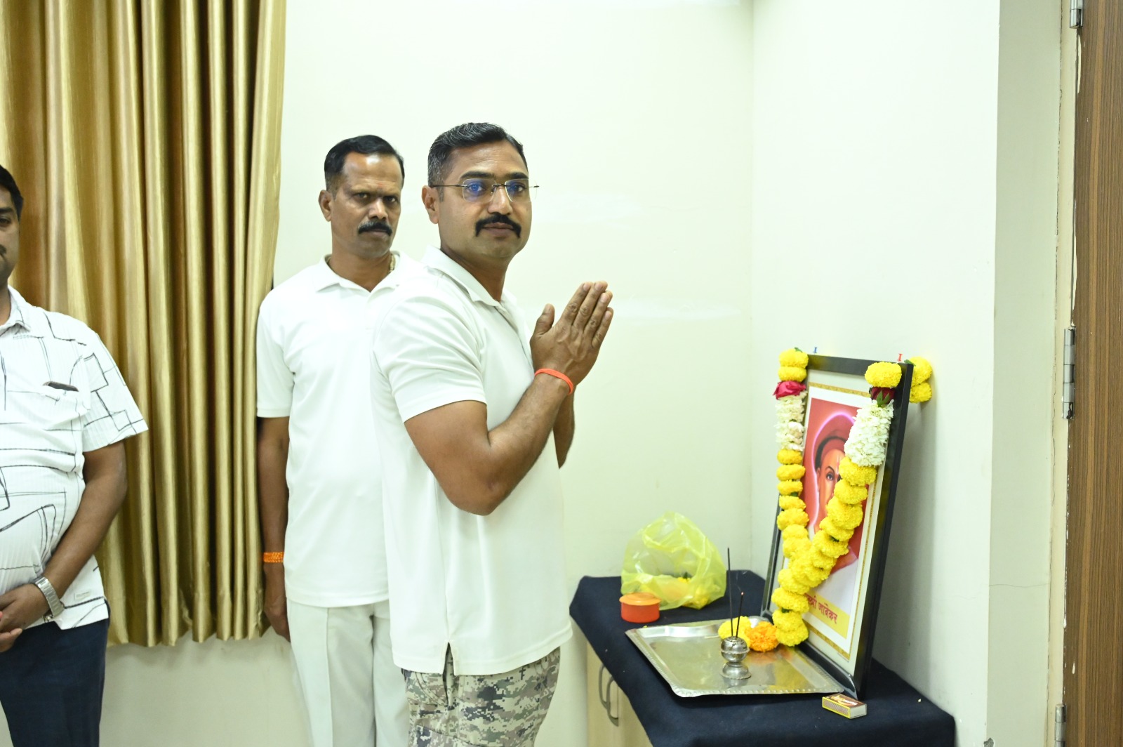 पोलीस प्रशिक्षण केंद्र जालना येथे,अपर पोलीस अधीक्षक श्री डॉ राहुल खाडे प्राचार्य तसेच उपस्थित पोलीस अधिकारी/अंमलदार व मंत्रालयीन कर्मचारी यांनी “लोकराजा राजर्षी शाहू महाराज यांच्या जयंती” निमित्त, त्यांच्या प्रतिमेला पुष्पहार व पुष्प अर्पण करून अभिवादन केले.